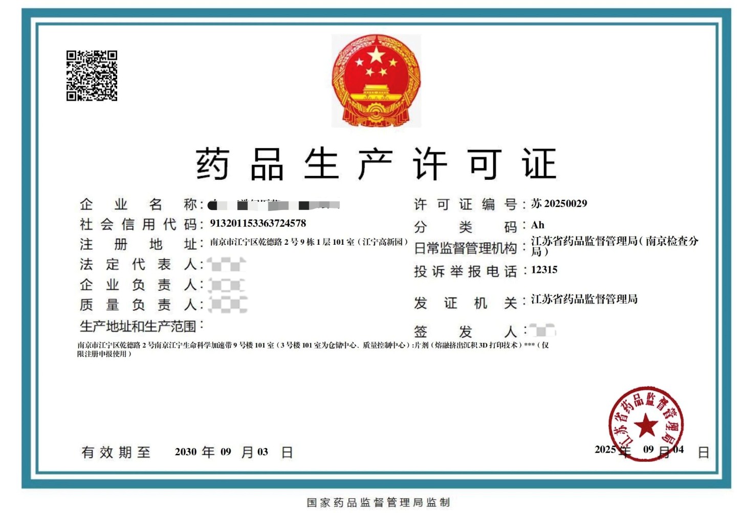 江苏省药监局2025年9月核发了全国首张应用3D打印技术生产药品的《药品生产许可证》。普通的一纸许可标志着我国在3D打印技术药品研发和产业化进程上迈出关键一步,也意味着我国正式成为继美国之后,全球第二个能实现3D打印药物产业化的国家。我们在热熔挤出沉积(MED)这一细分赛道已然站在了领跑位置。